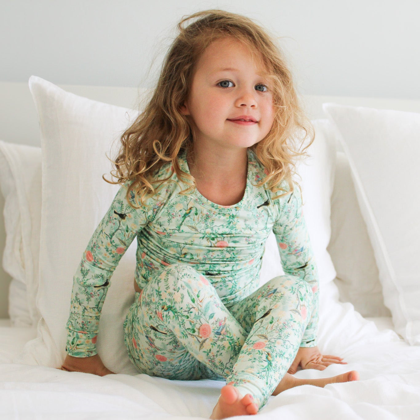 Soft, stylish, and made to move—our girls’ bamboo toddler pajamas are a dreamy blend of comfort and charm. Crafted from our signature bamboo fabric, they’re breathable, gentle on delicate skin, and perfect for everything from story time to snoozing. Thoughtful details like two-way zippers and tag-free labels make them as practical as they are pretty.
